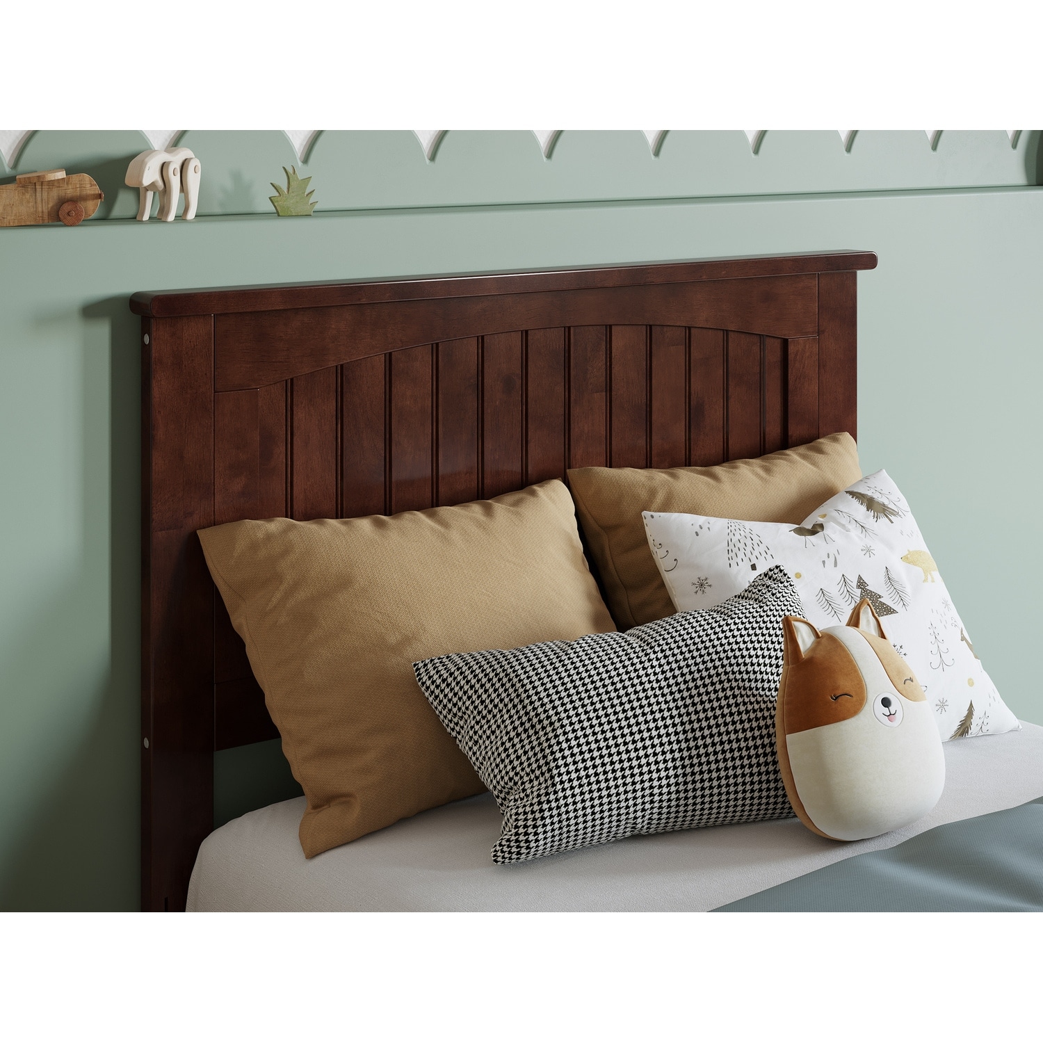 Solid Wood Twin Panel Headboard in Walnut with Classic Low Profile and Sleek Finish