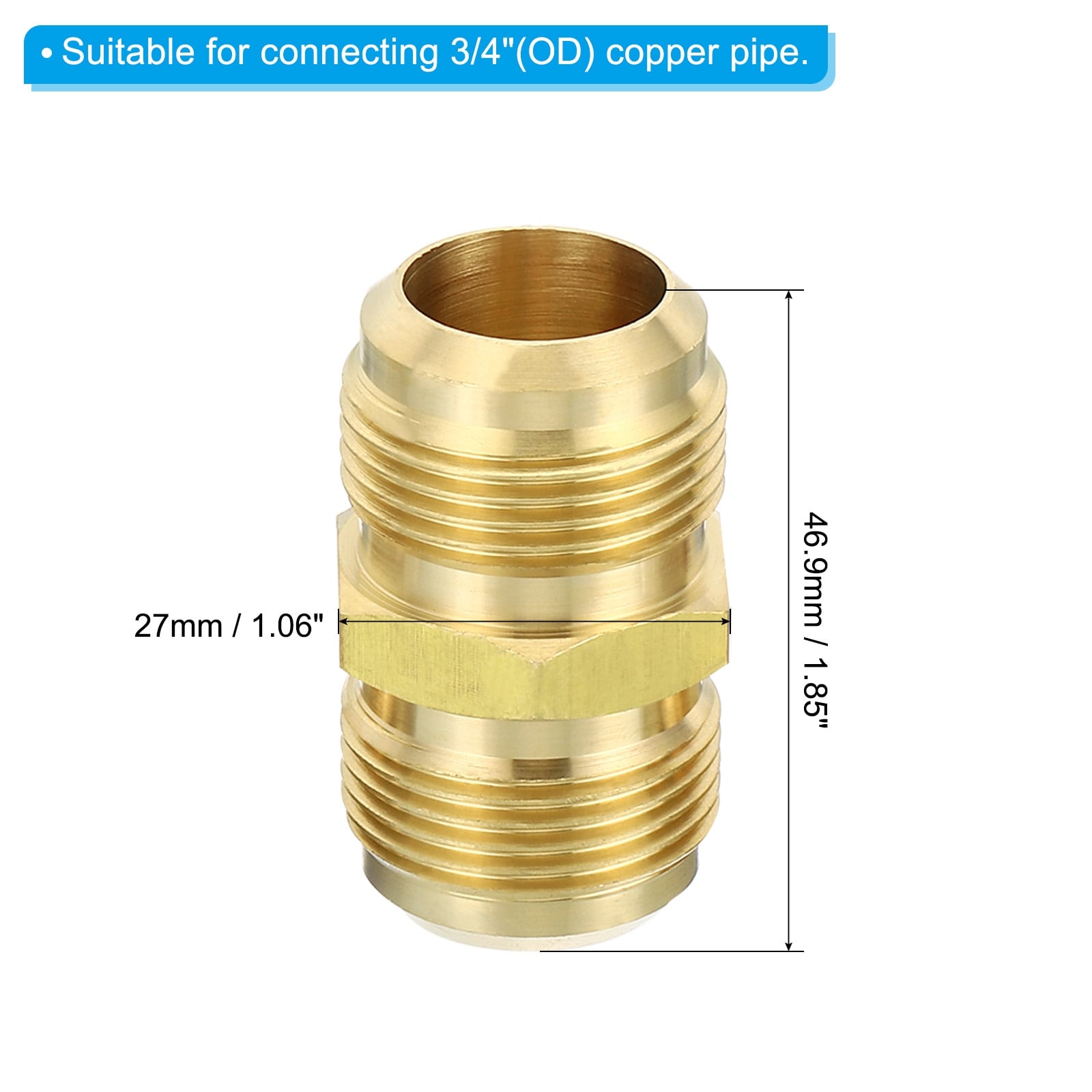 Brass Flare Union Connector, Gas Adapter Brass Tube Coupler Pipe Fitting for Hose Fitting - Gold Tone