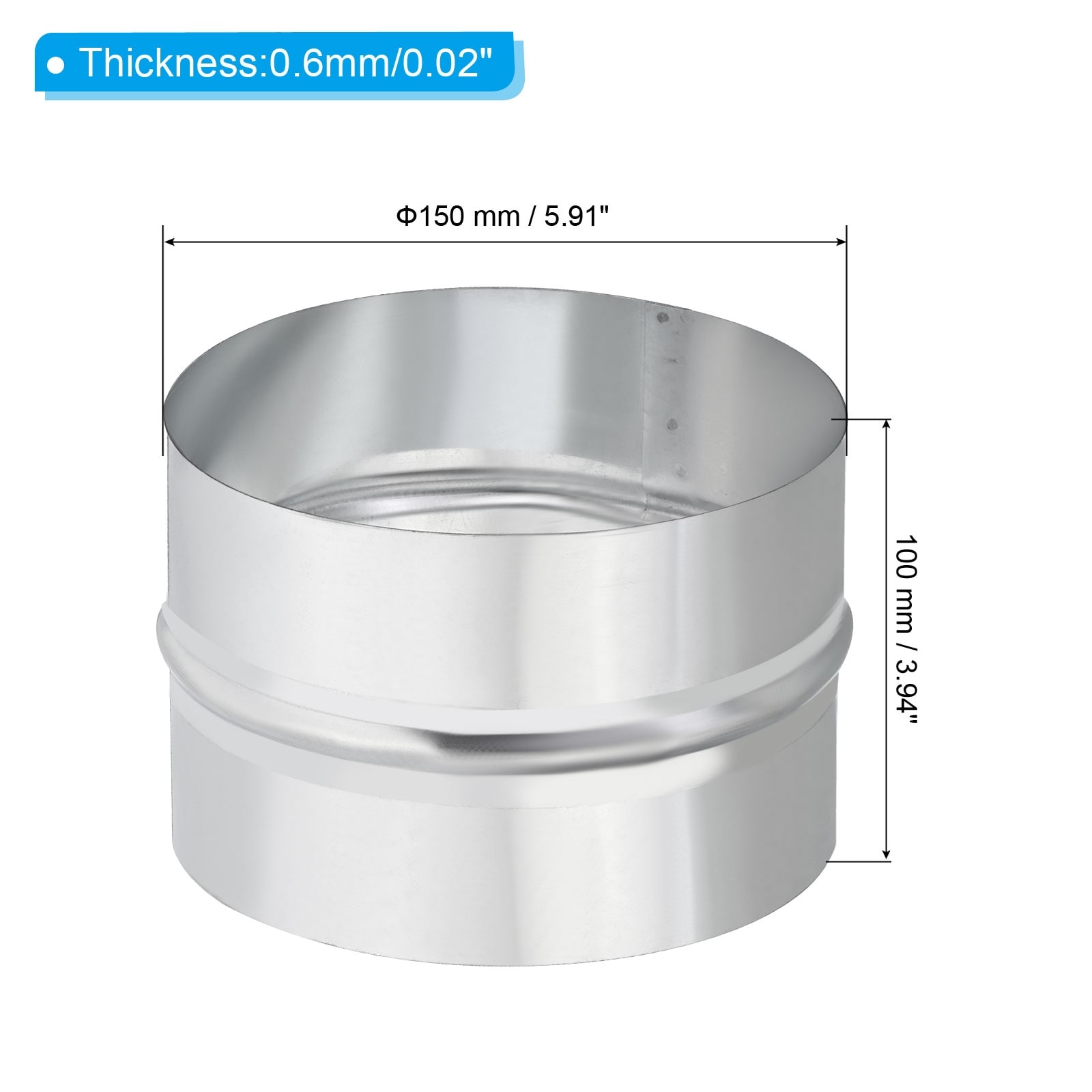 Duct Connector Flange, Straight Pipe Exhaust Flange Stainless Steel Pipe Hose Duct Collar for Heating Cooling - Silver