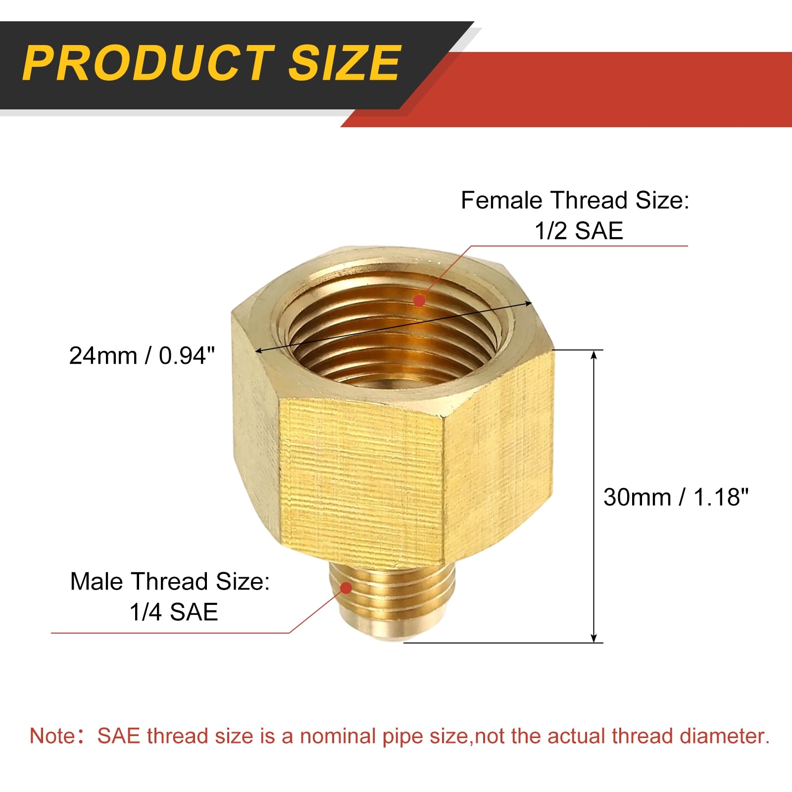 Brass Pipe Fitting, Pipe Adapter Flare Tube Fitting for Air Gas Line Refrigeration HVAC - Brass Tone