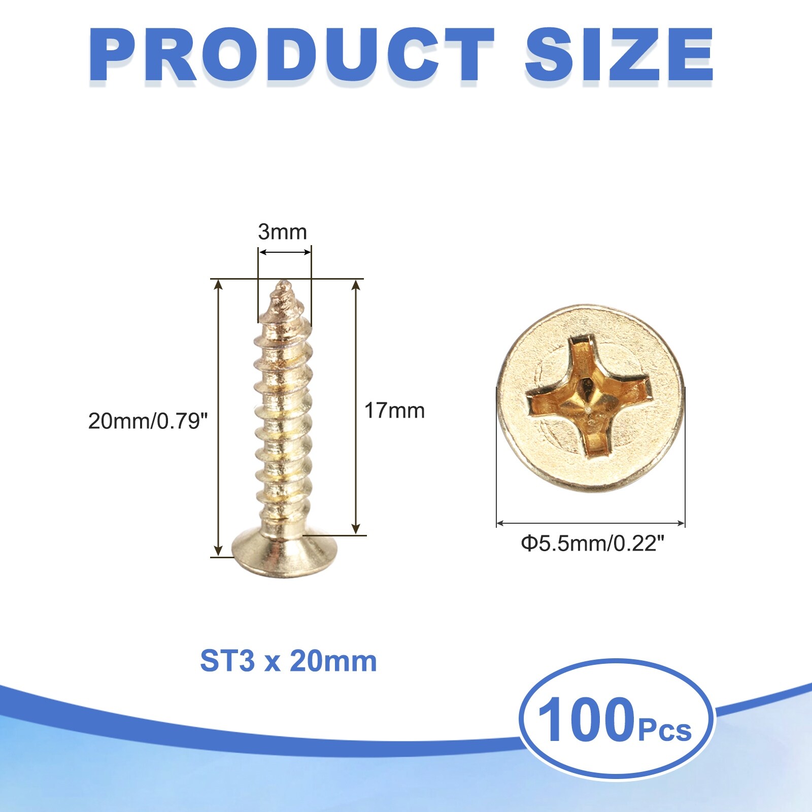 Brass Screws, Round Head Self-Tapping Wood Screw Fasteners - Gold