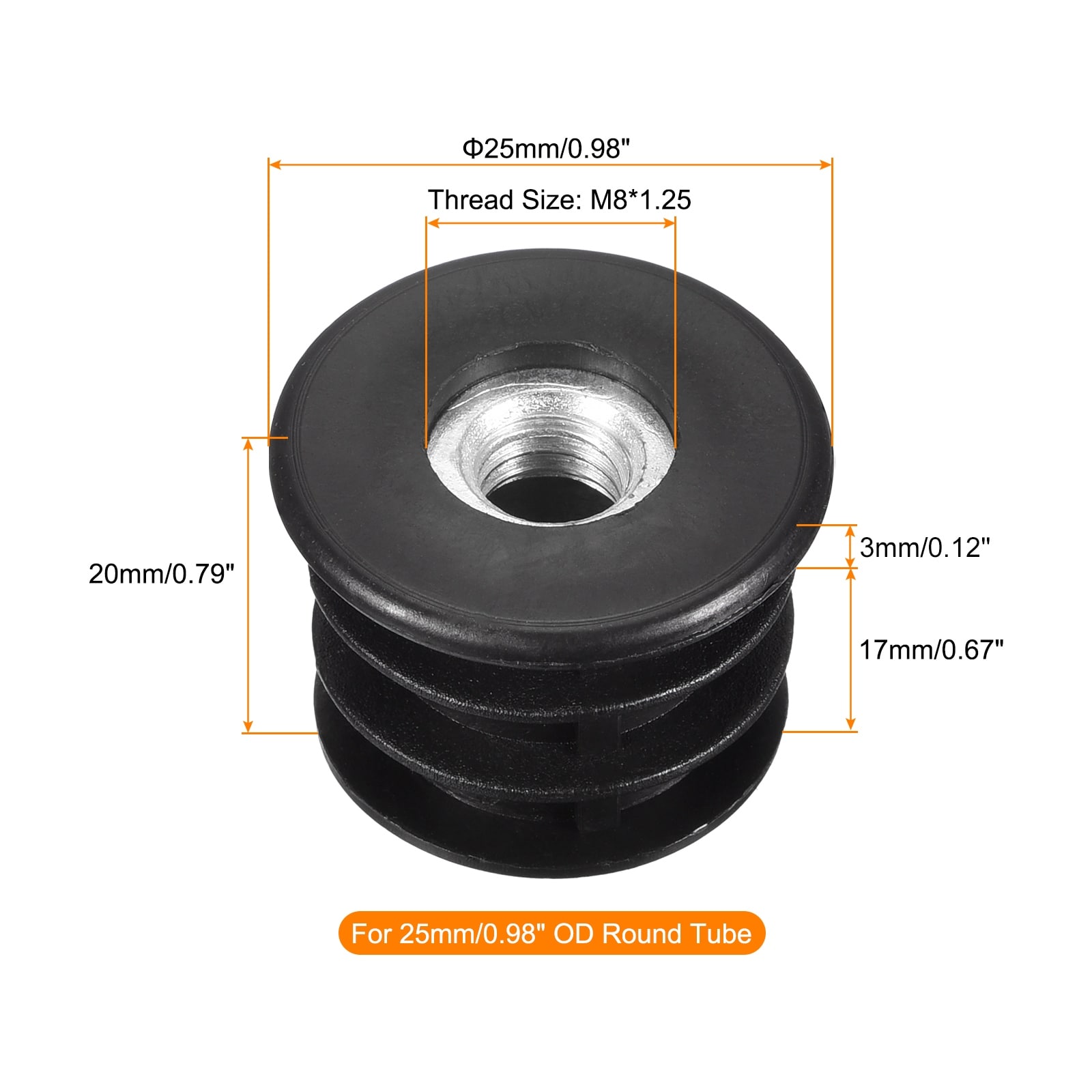 Inserts for Tubes with Thread, Plastic Plug Caster Insert Chair End Cap Furniture Leg - M8