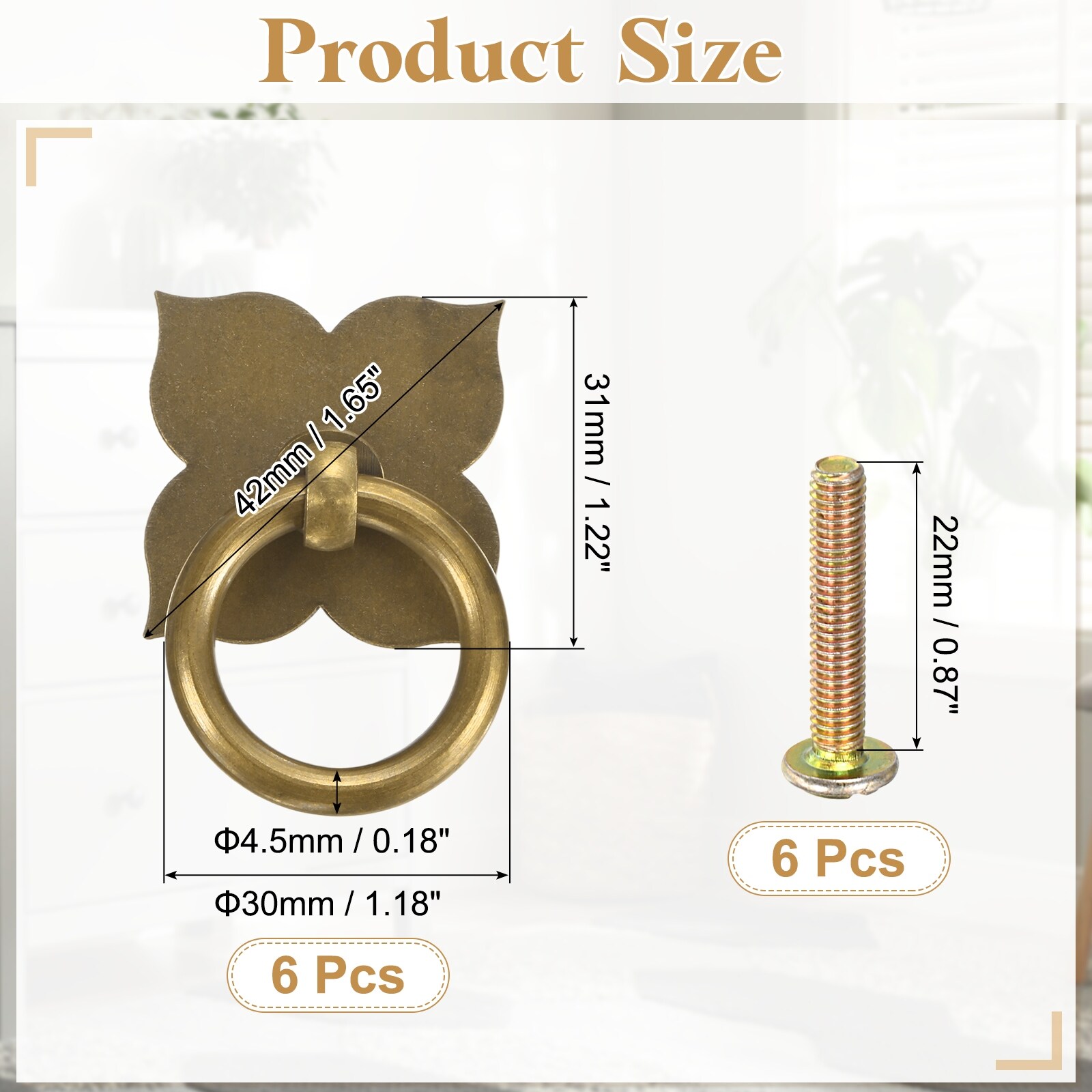 Brass Drawer Pulls and Knobs Vintage Ring Drawer Pulls with Screws Four-petal Flower Shape