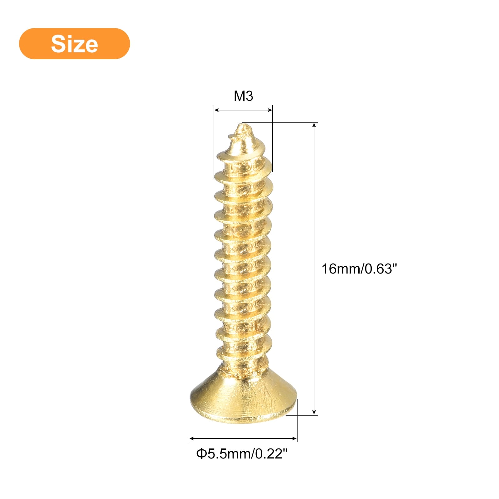 Brass Wood Screws, Phillips Flat Head Self Tapping Screw WoodWorking Screw for Wooden Furniture Home - Gold