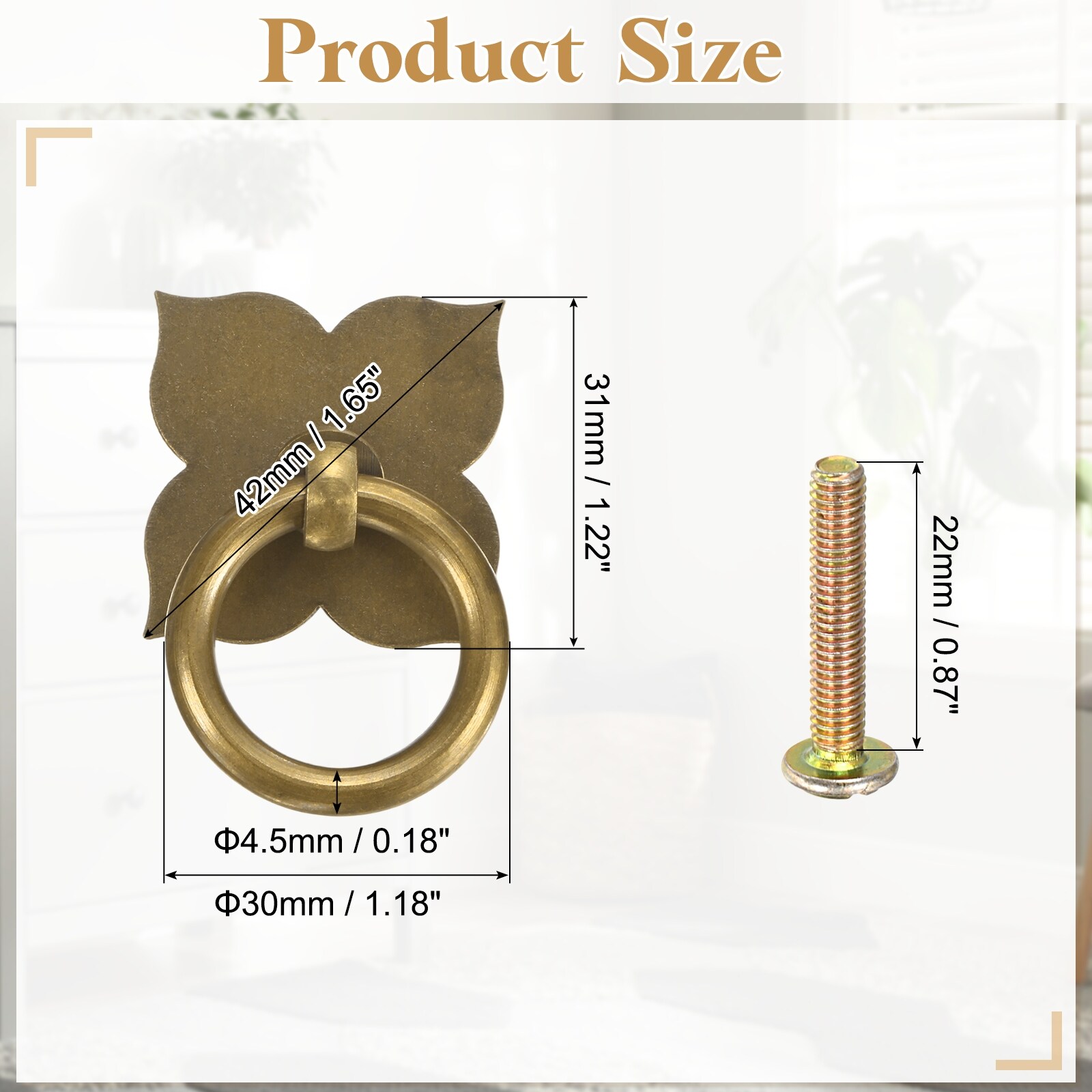 Brass Drawer Pulls and Knobs Vintage Ring Drawer Pulls with Screws Four-petal Flower Shape