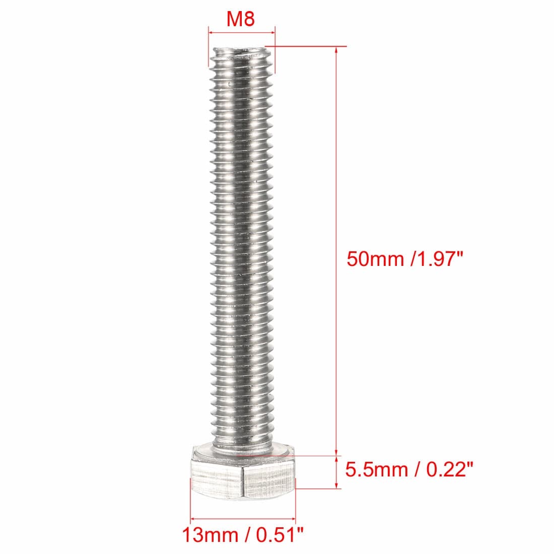 Hex Bolts, 304 Stainless Steel Hexagon Head Machine Screw Bolt Hardware Fastener