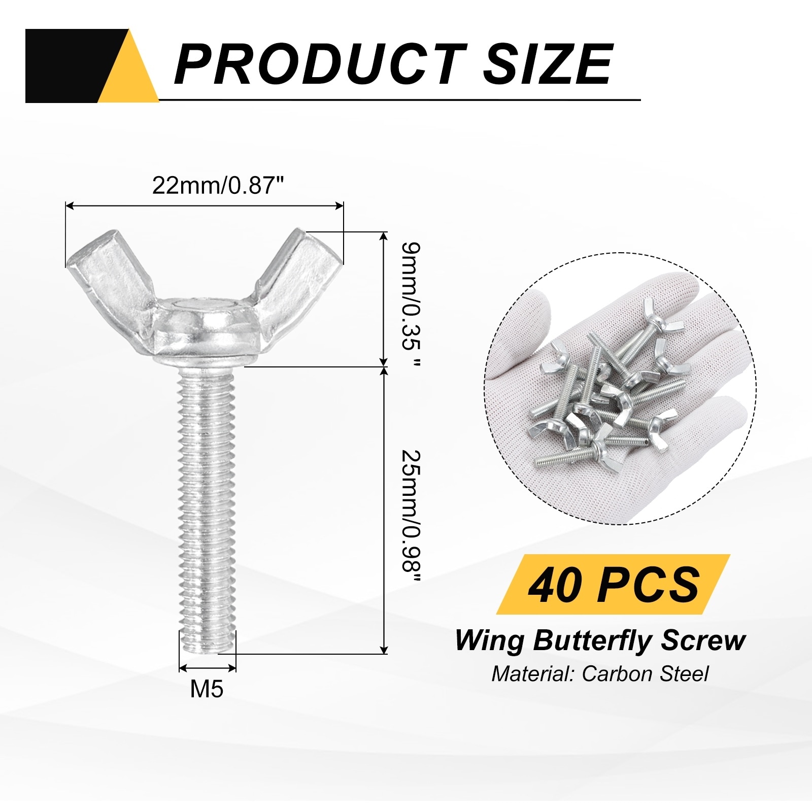 Wing Butterfly Screw Bolts, Carbon Steel Zinc Plated Wing Bolt Thumb Hand Screws Fasteners for Home, Machine - Silver