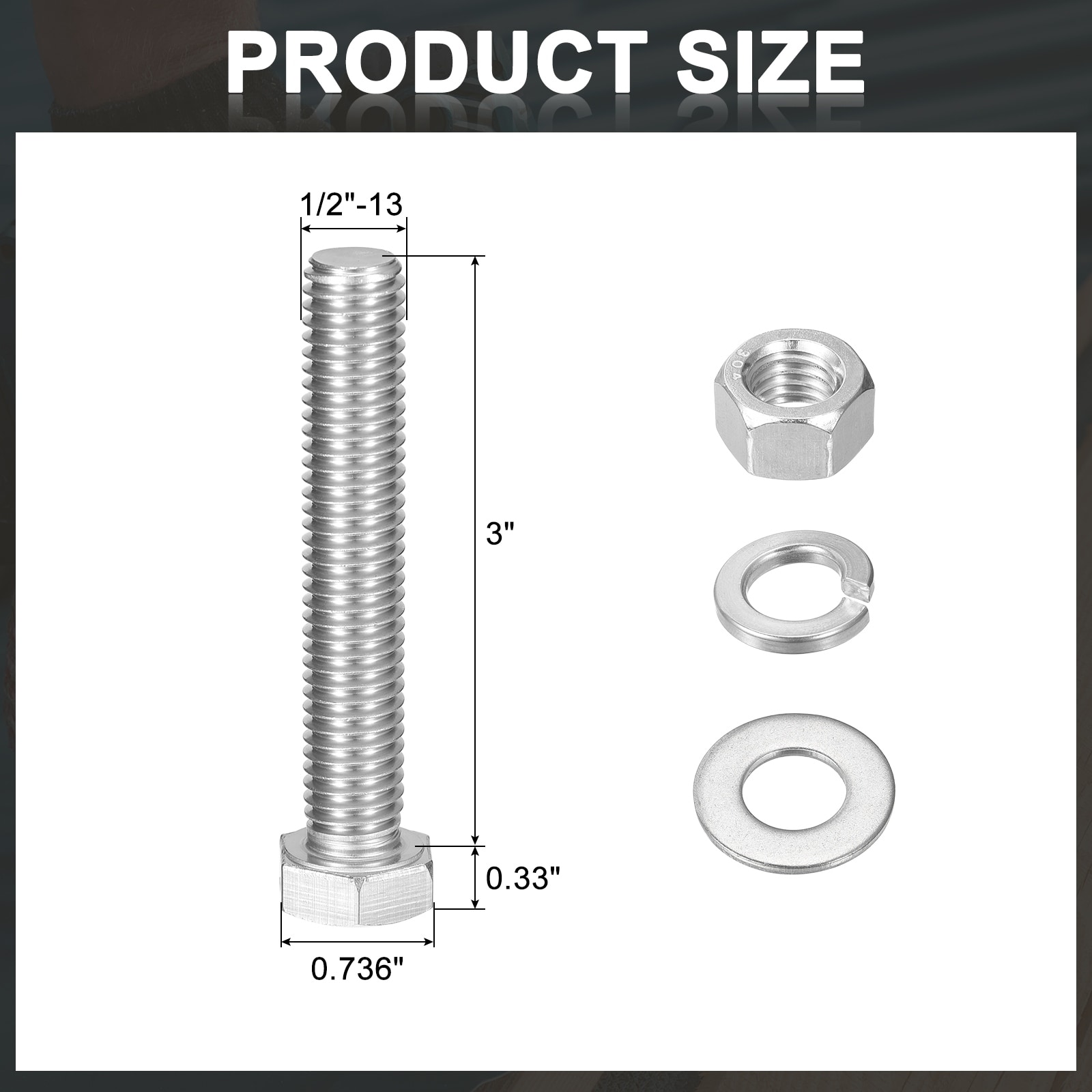 Hex Head Screw Bolt, 304 Stainless Steel Fully Threaded Screw Bolt with Nuts, Flat & Lock Washer