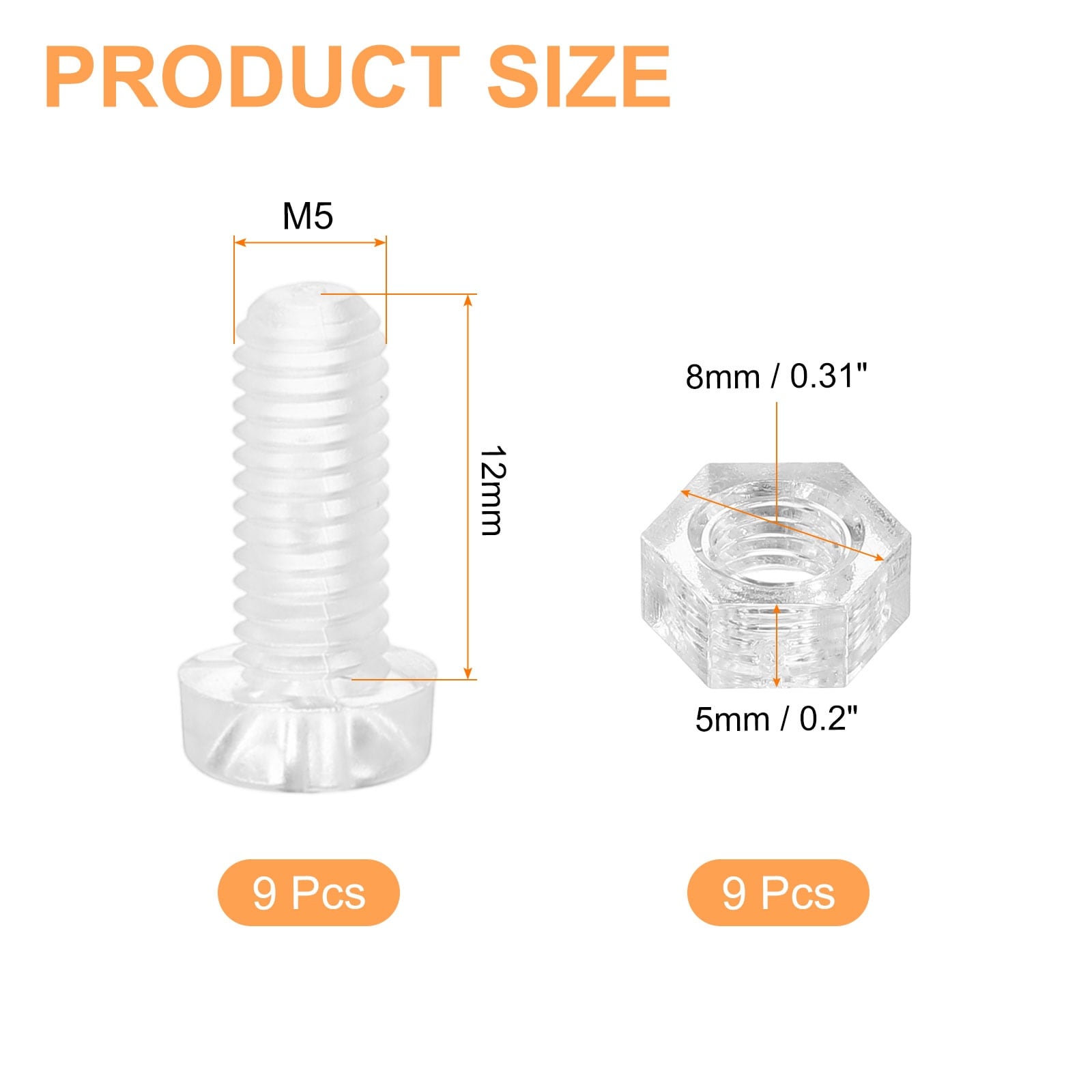 Clear Acrylic Screws Kit, Round Head Phillips Bolts with Hex Nuts, Bolts and Nuts Kit for Machine Accessories