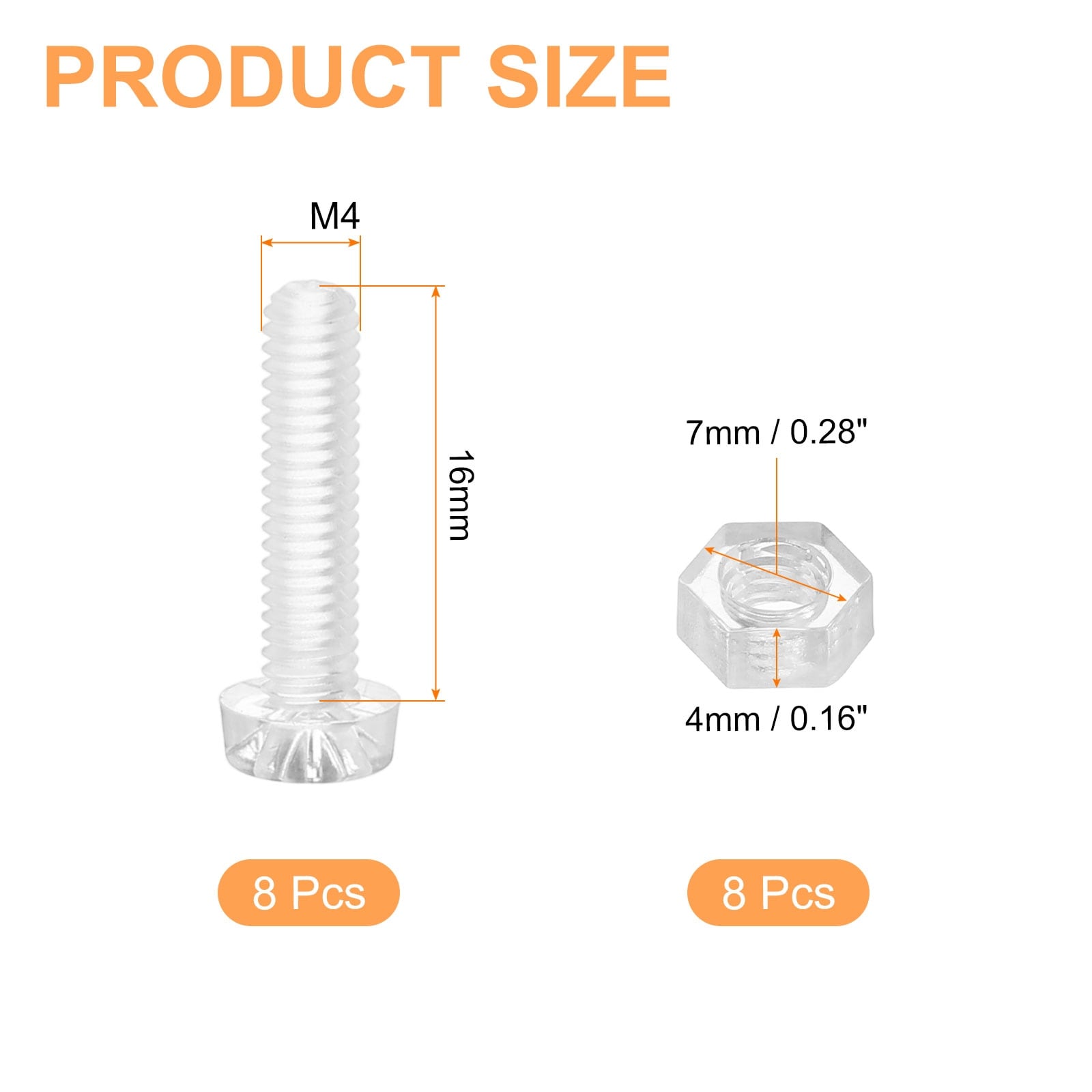 Clear Acrylic Screws Kit, Round Head Phillips Bolts with Hex Nuts, Bolts and Nuts Kit for Machine Accessories