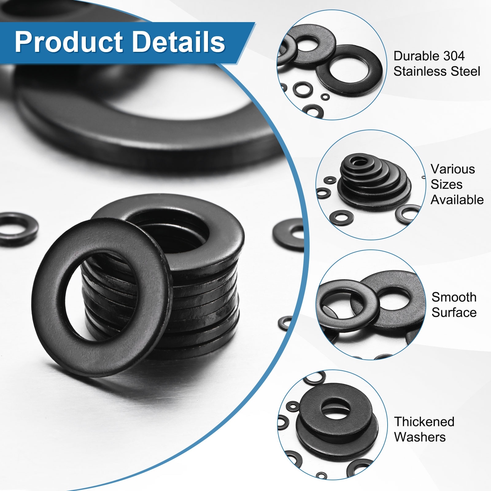 Flat Washers, Stainless Steel Washers for Bolts Screws Nuts for Automotive/Machinery/Furniture, Flat Metal Washers