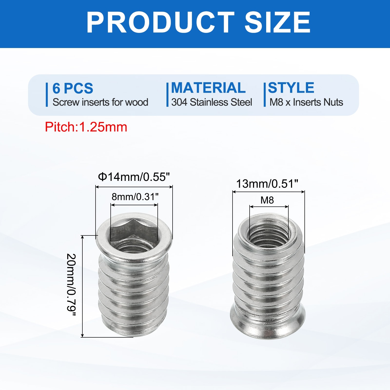 Threaded Inserts Nuts,Hex Socket Drive Nut Inserts for Screws Furniture Screw in Nuts Bolt Fastener Connector Wood