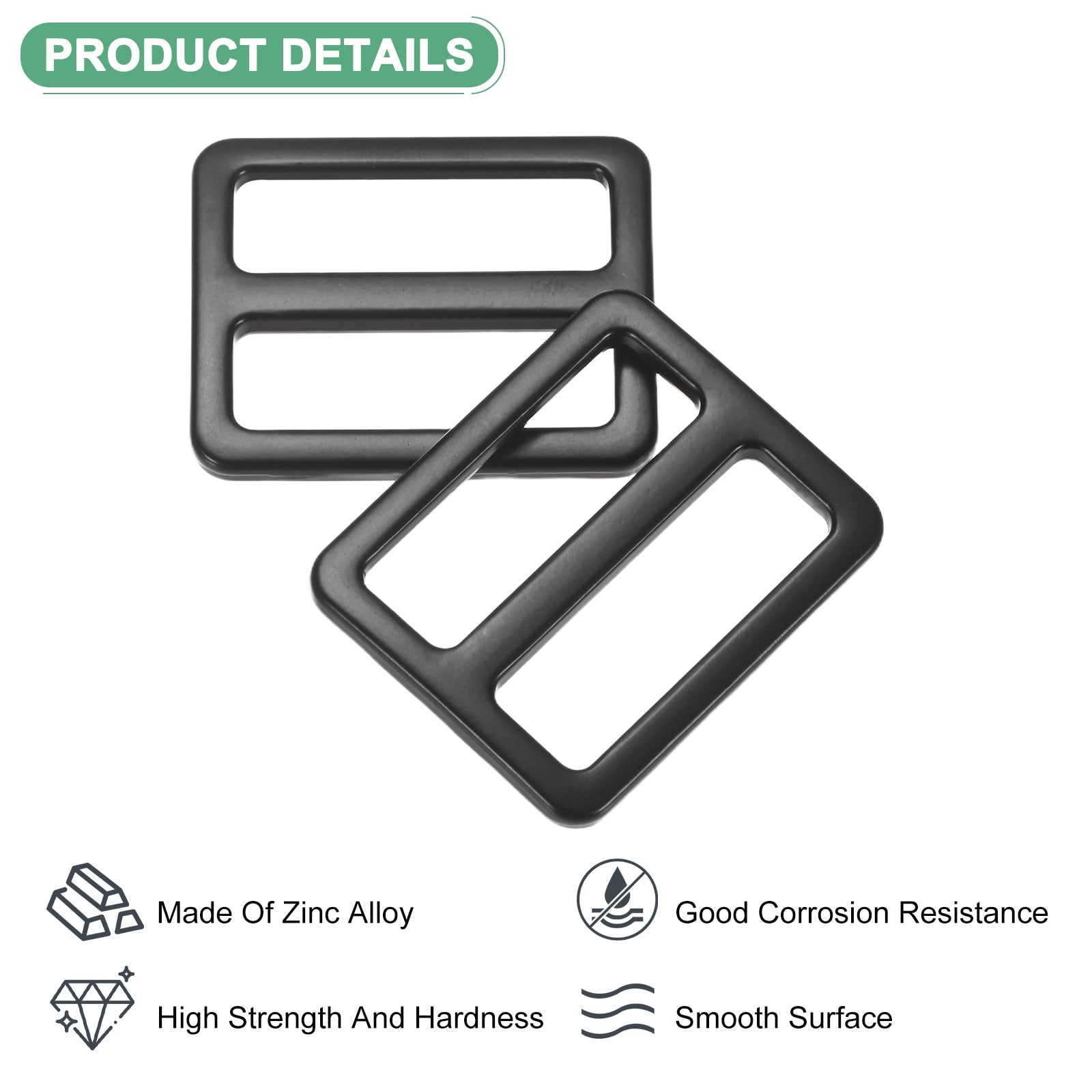 Pack Tri Glide Metal Buckles, Zinc Alloy Slider Belt Strap Adjuster for Strap Keeper/Bag Straps/Dog Collars