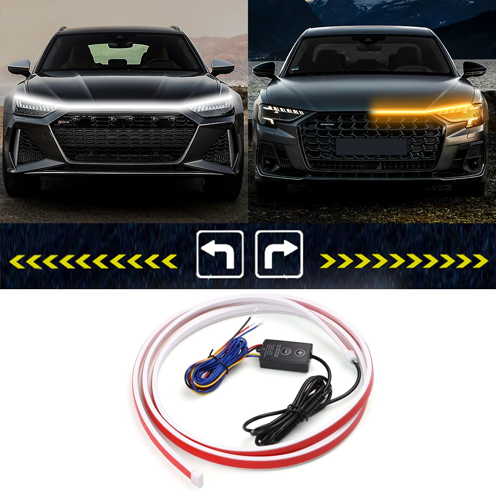 LED Car Daytime Running Light Strip Start Scan Yellow Turn Signal Indicator white