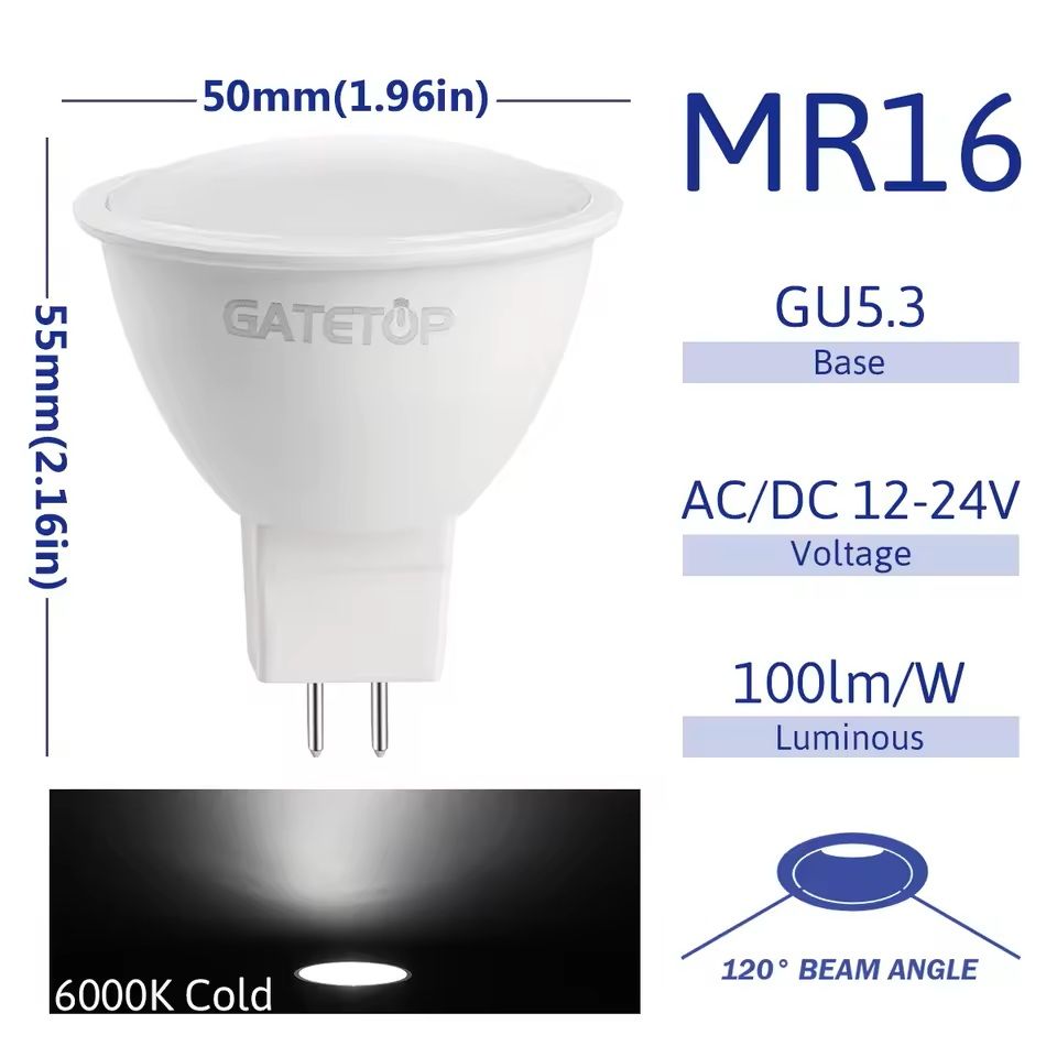 MR16 LED Spotlight Bulb With GU5.3 Base (Per Piece, 3W To 8W) 120degree 6000k 5w