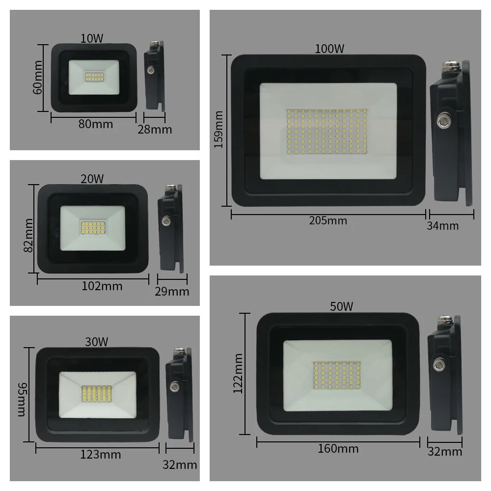 LED Floodlight: Waterproof IP68 Outdoor Wall Garden Spotlight 10W 20W 30W 50W 100W Flood Light Reflector Foco Lamp 220 cold White 6000k black Shell 10W