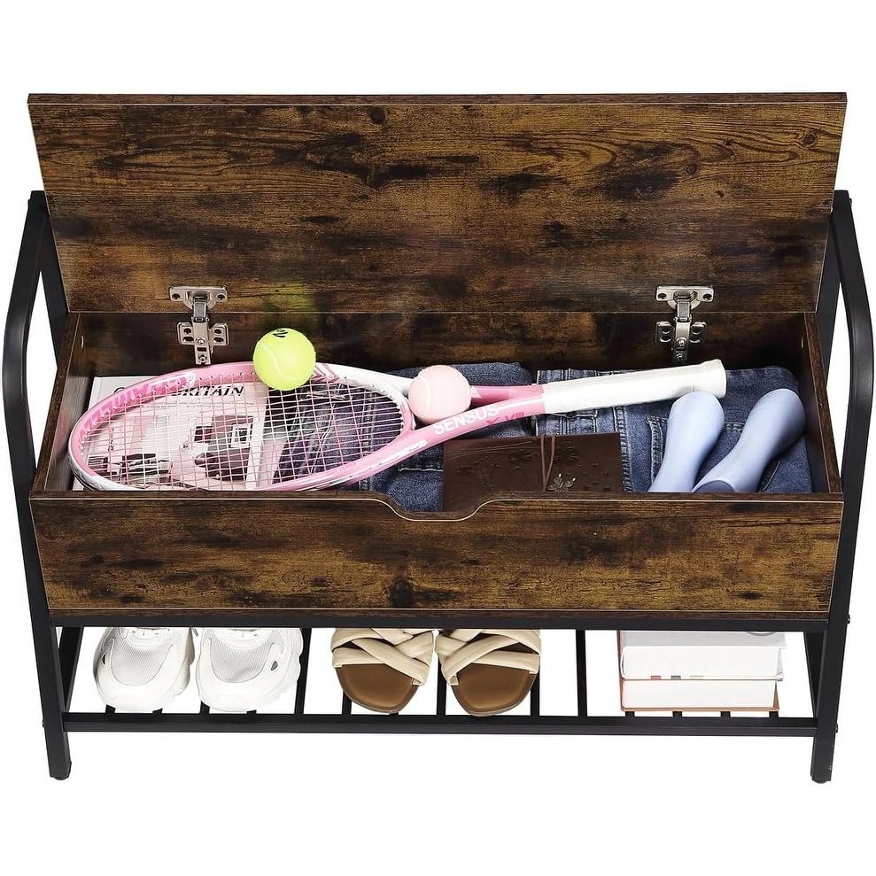 Storage Bench with Lift Top Box, Entryway Shoe Storage Organizer with Shoe Rack, Small Entryway Shoe Bench