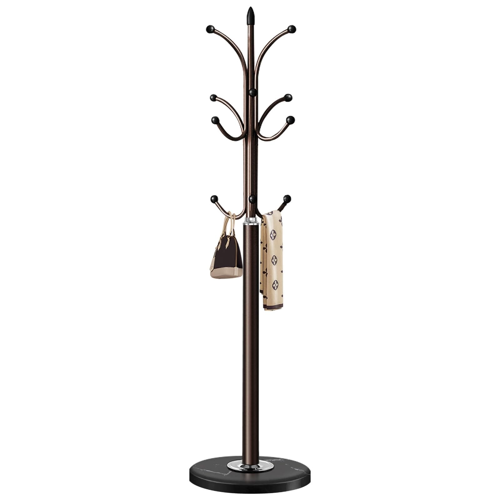 Metal Coat Rack Stand with Natural Marble Base, Coat Rack Freestanding, Sturdy Hall Tree with 12 Hooks for Hanging Clothes