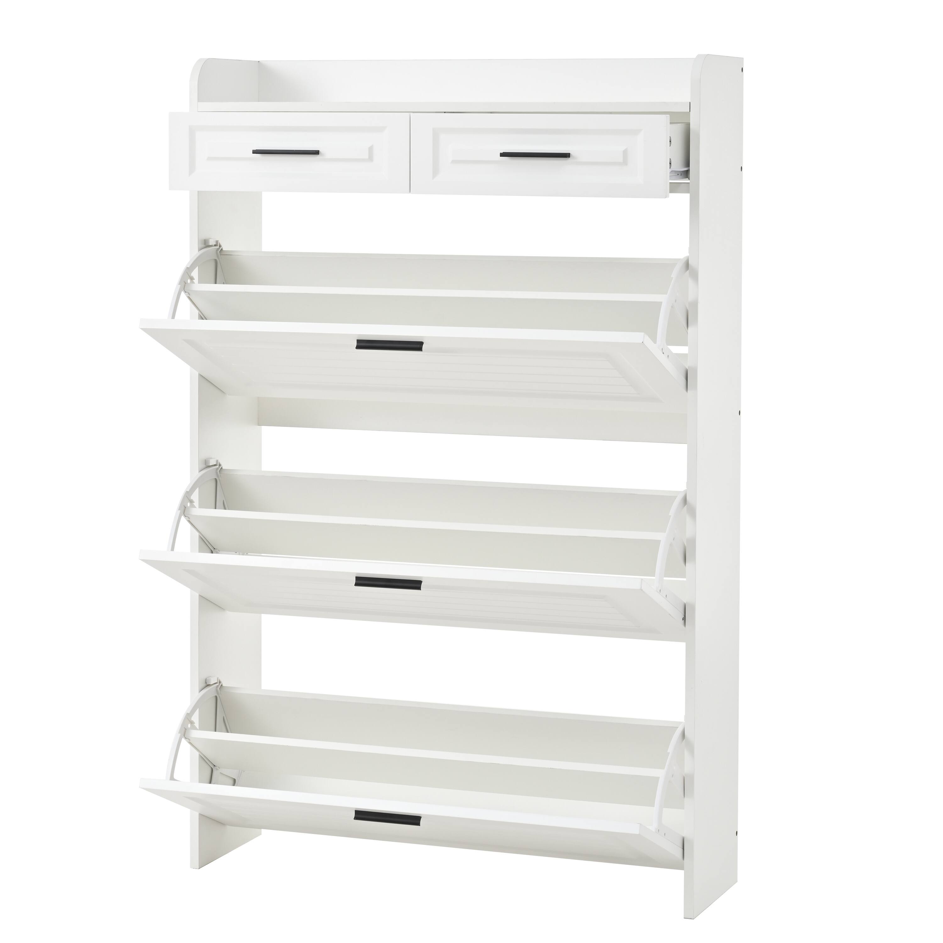 Two Drawers Three-Fold Doors Large Storage Shoe Cabinet