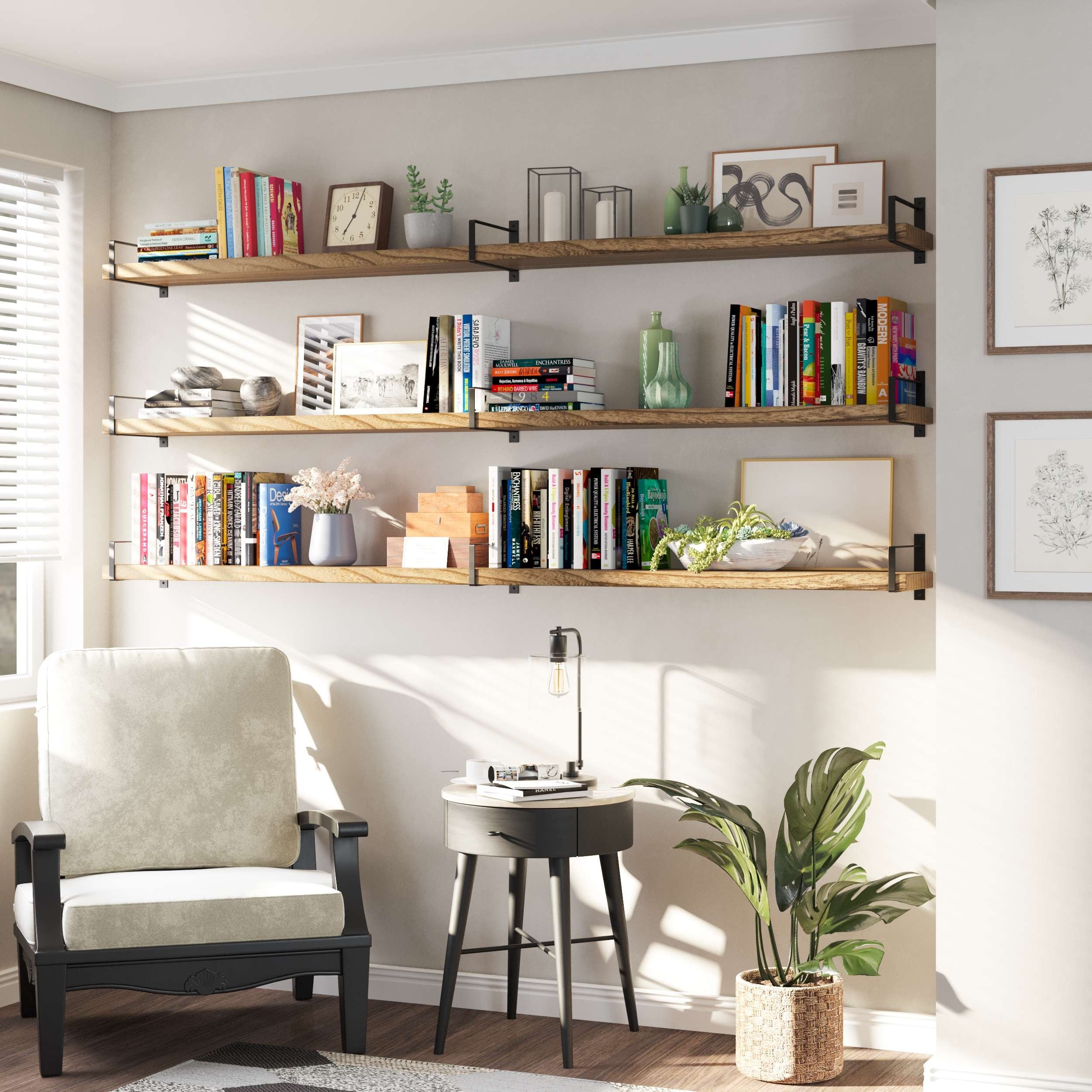 Wallniture Toledo 48 Inch Wooden Shelf for Living Room, Office Shelf, Wall Mounted Bookshelf, Farmhouse, Burnt, 1 Pc