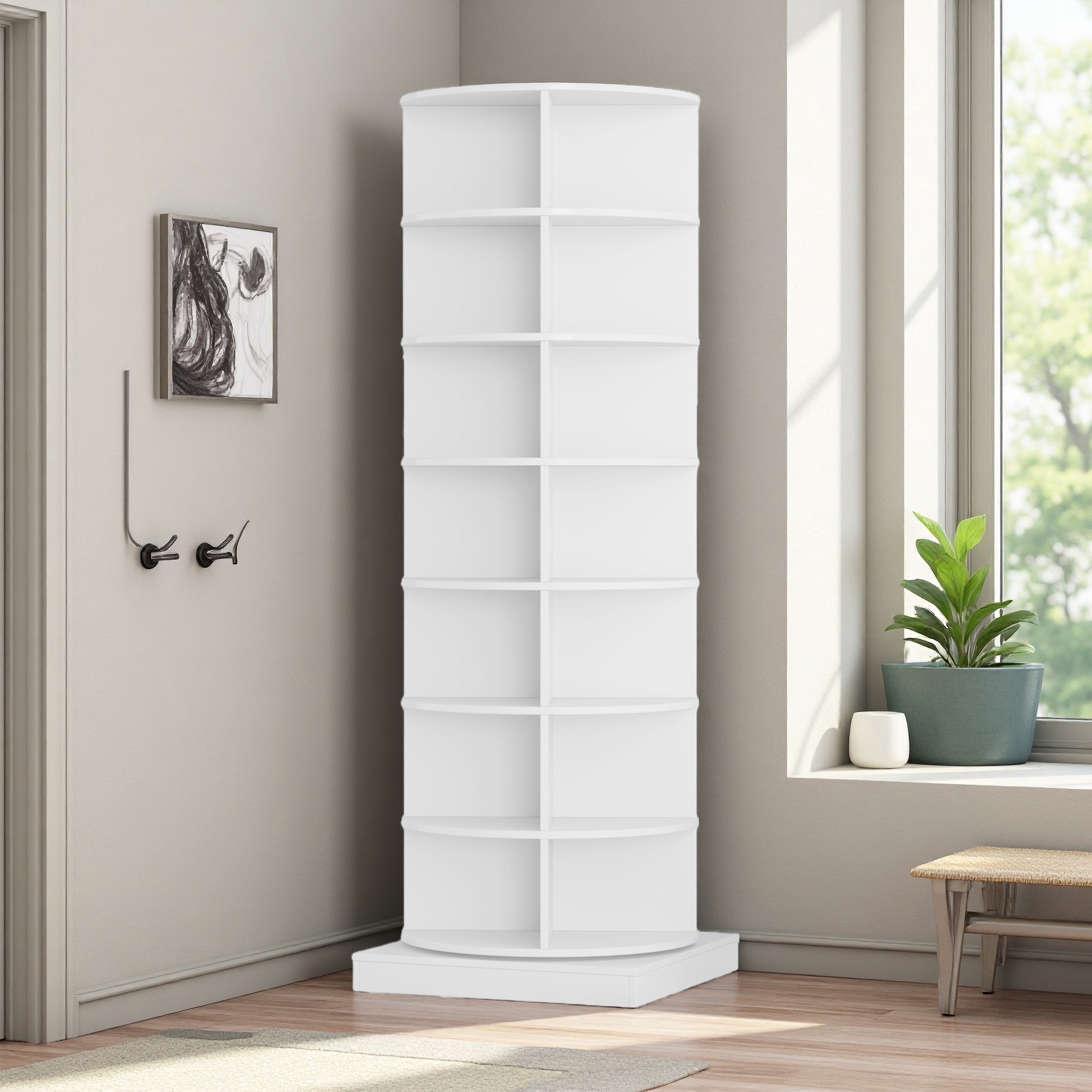 64.96"H 360° Rotating Shoe Cabinet, 7-Layer Shoe Rack with Large Capacity, Holds Up to 28 Pairs of Shoes, Space-Saving Storage