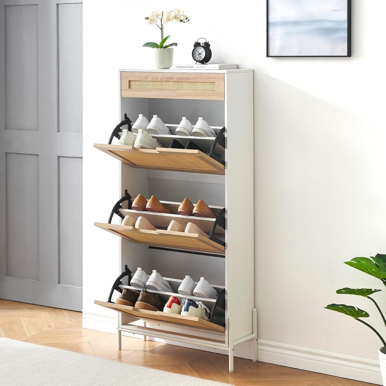 3 Flip Door Shoe Cabinet Organizer Freestanding, Modern Shoe Rack Storage Organizer for Living Room Entrance Hallway