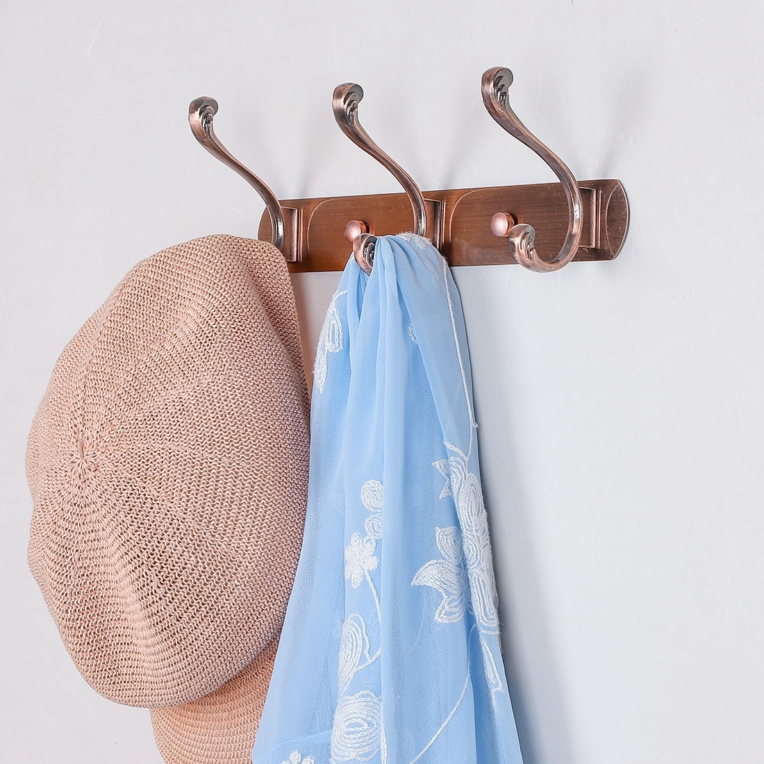 Dual Wall Hook Rack Stainless Steel Base 10 Inch 3 Hooks Coat Holder - Copper
