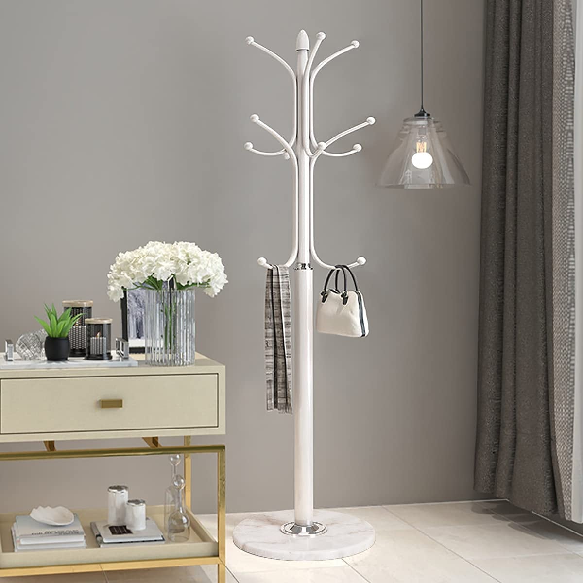 Metal Coat Rack Stand with Natural Marble Base, Free Standing Hall Tree with 12 Hooks for Hanging Scarf, Bag