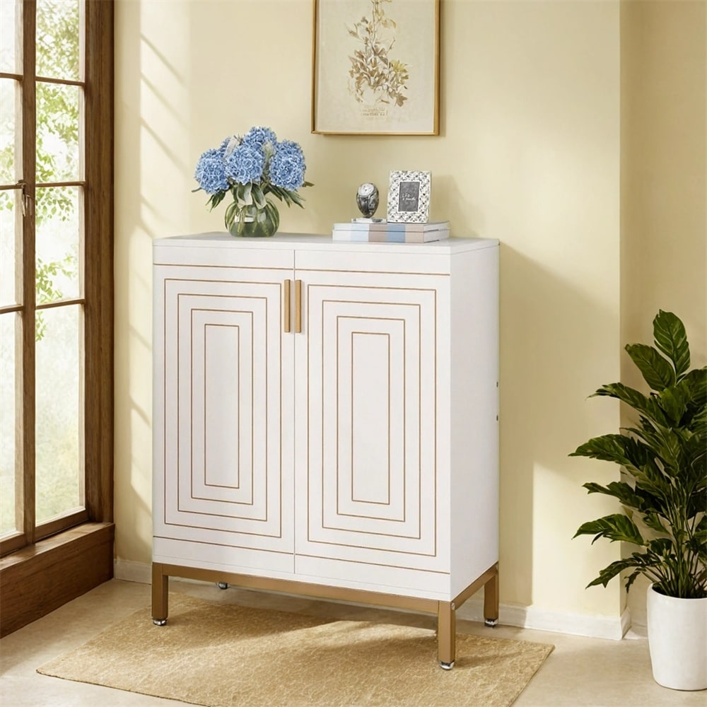 White Floor-Mounted Shoe Cabinet,Features Adjustable Design