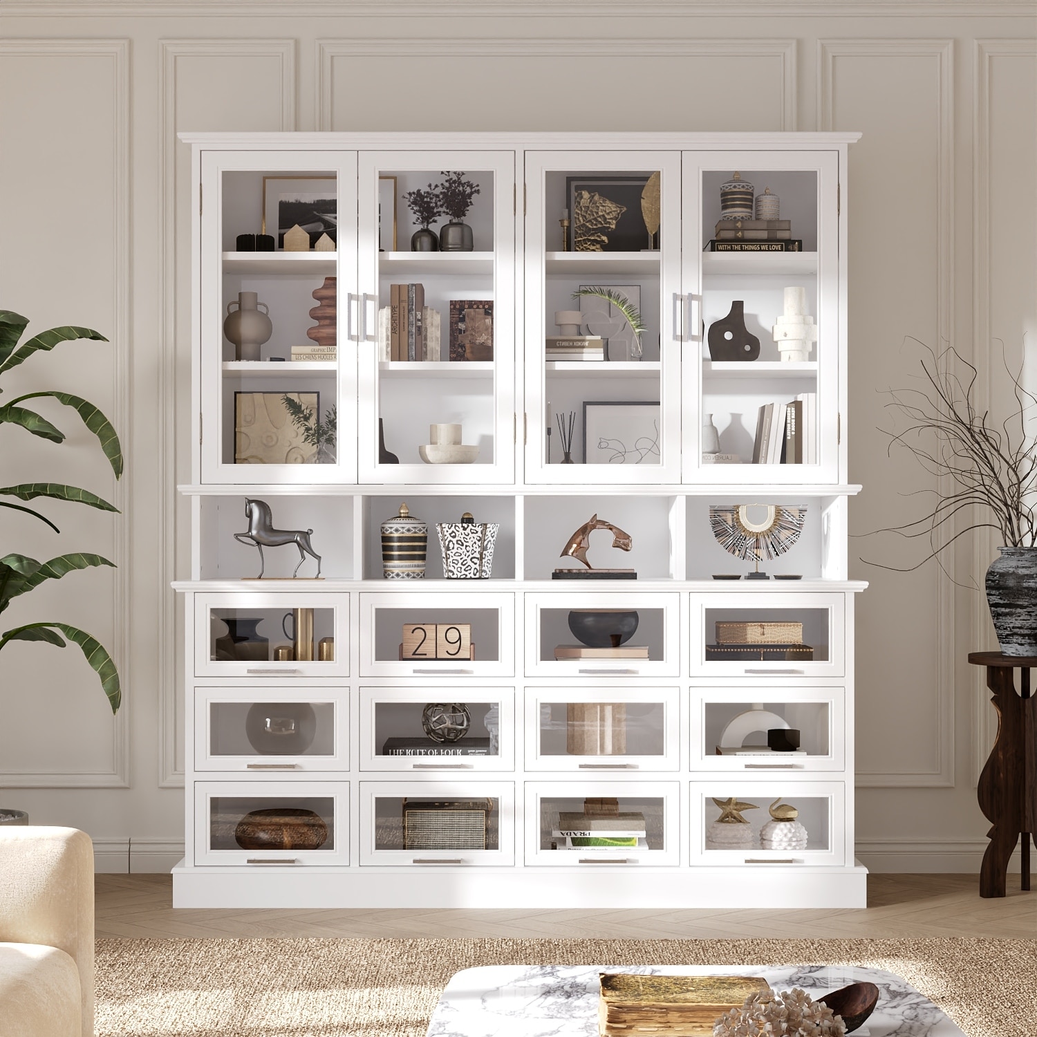 Modern Curio Display Cabinet 7-Tier Bookshelf with 16 Drawers