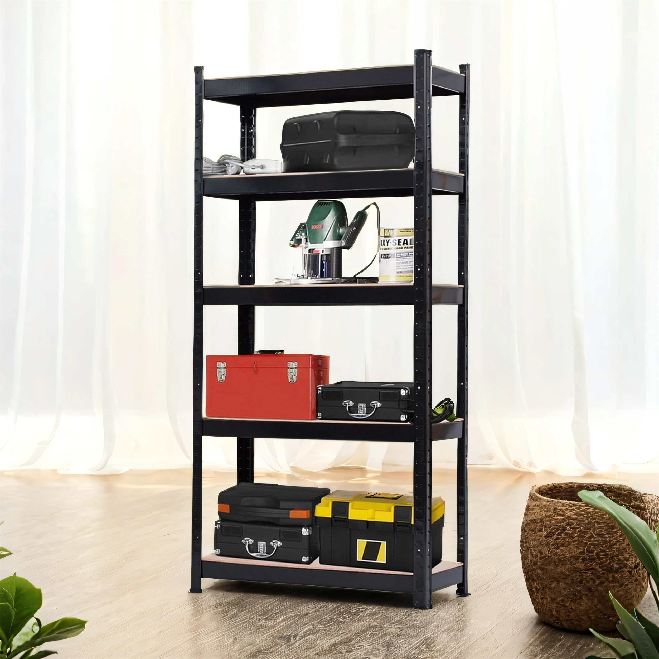 87"H 5-Storey Garage Rack, Adjustable, 3000LBS Reinforced Steel Shelving