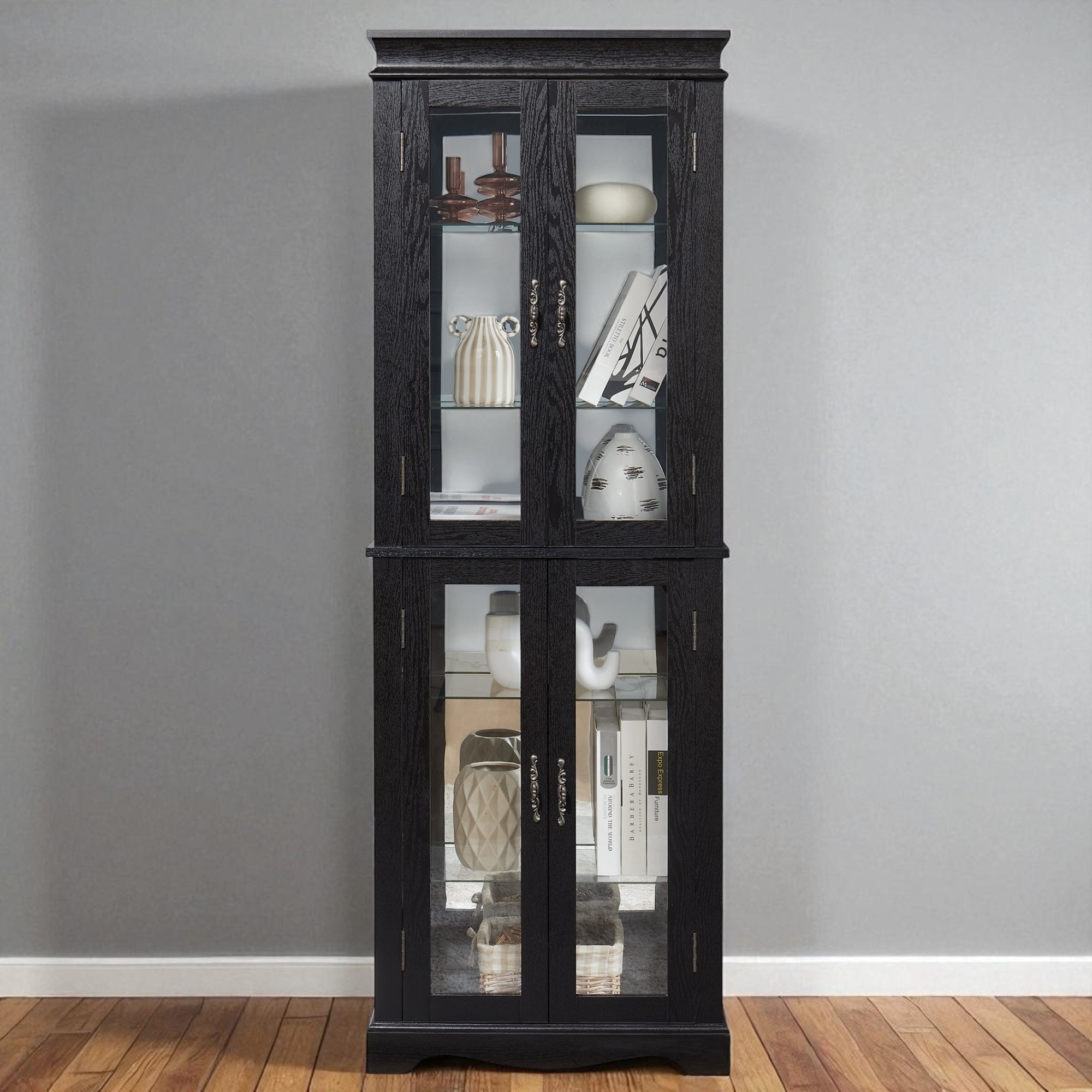 70" Lighted Glass Curio Display Cabinet with Wood Frame, Adjustable Shelves & Six-Tier Storage for Wine, Toys & Collectibles