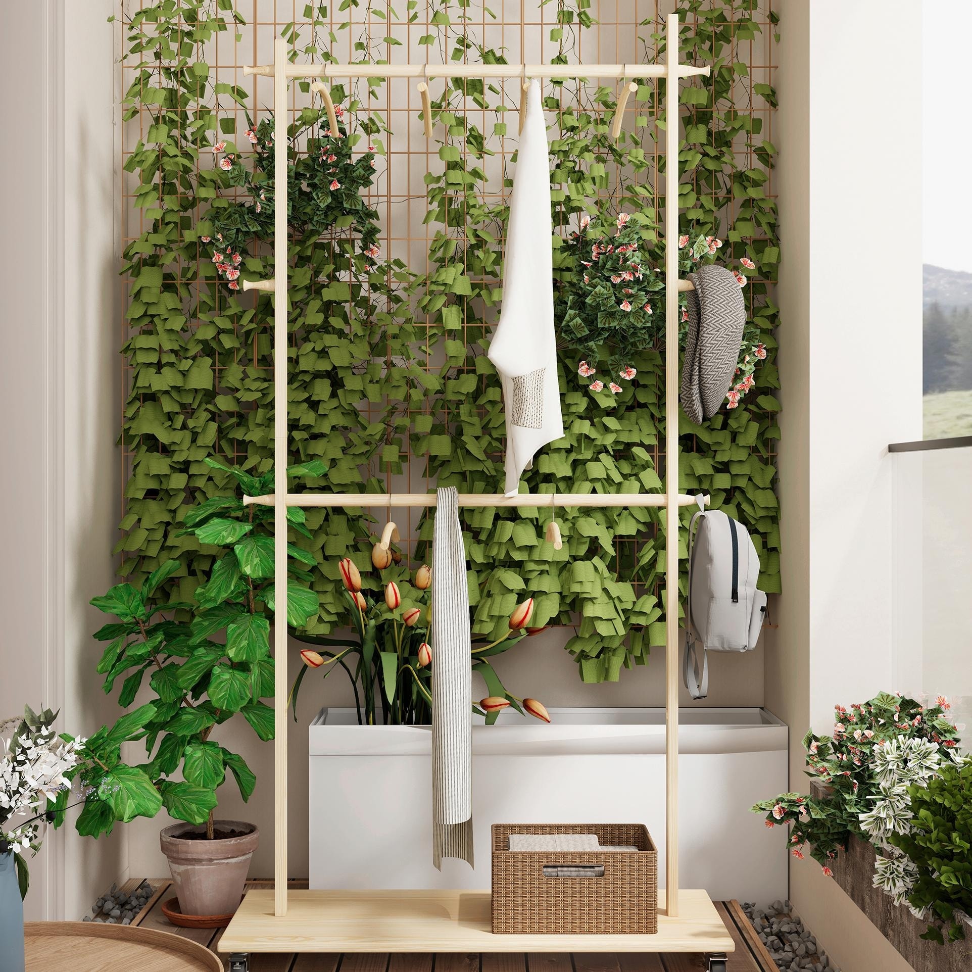 Solid Wood Garment Rack with Wheels & 6 Hangers - Space Saving