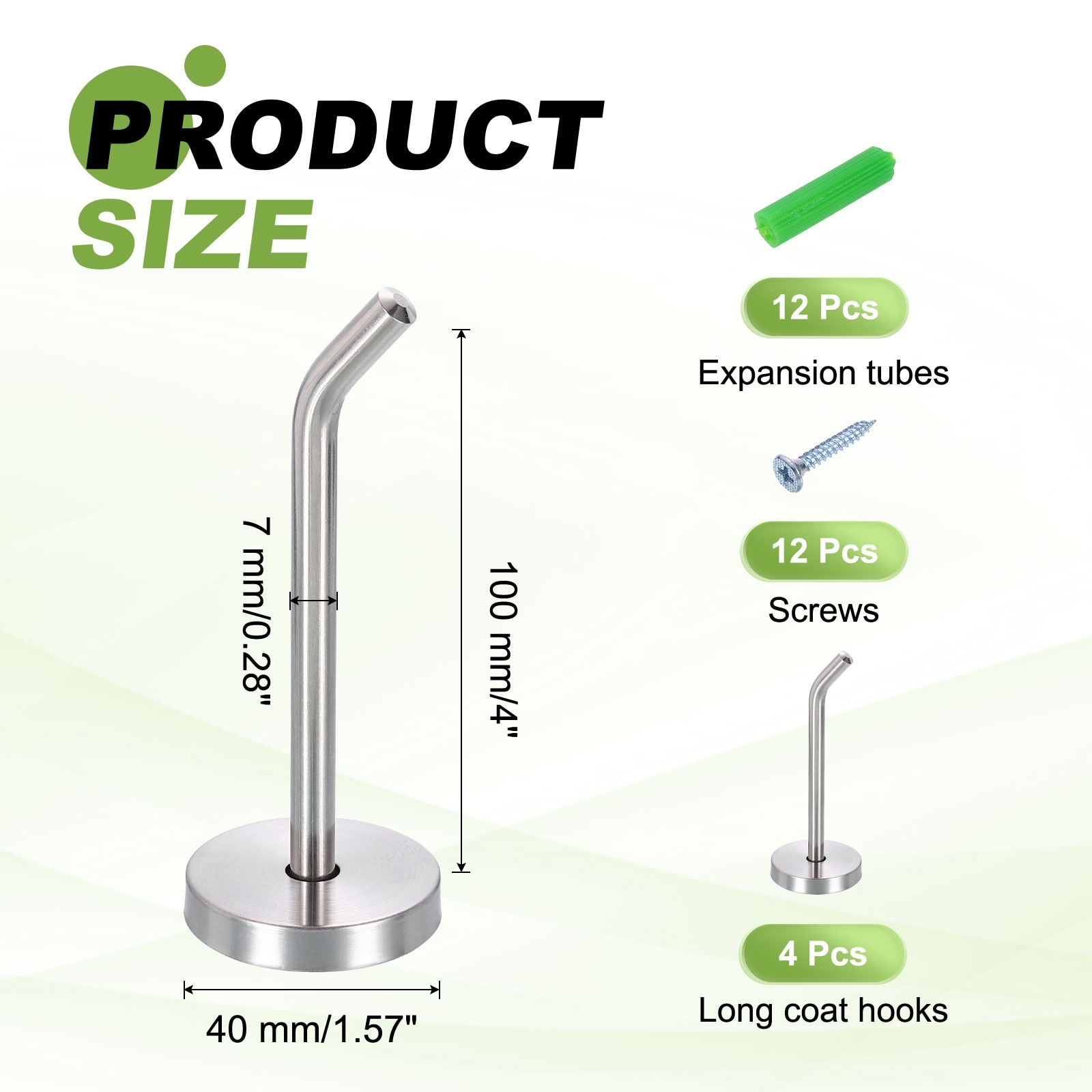 Coat Hooks, Stainless Steel Long Nose Wall Mount Hook