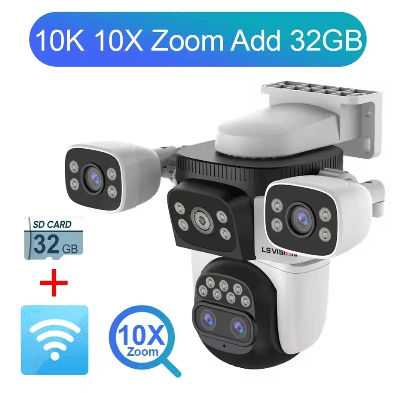 LS VISION 20MP 4 Lens Outdoor WiFi PTZ Security Camera With 10X Zoom & Smart Auto Tracking 10k 10xzoom Add 32g
