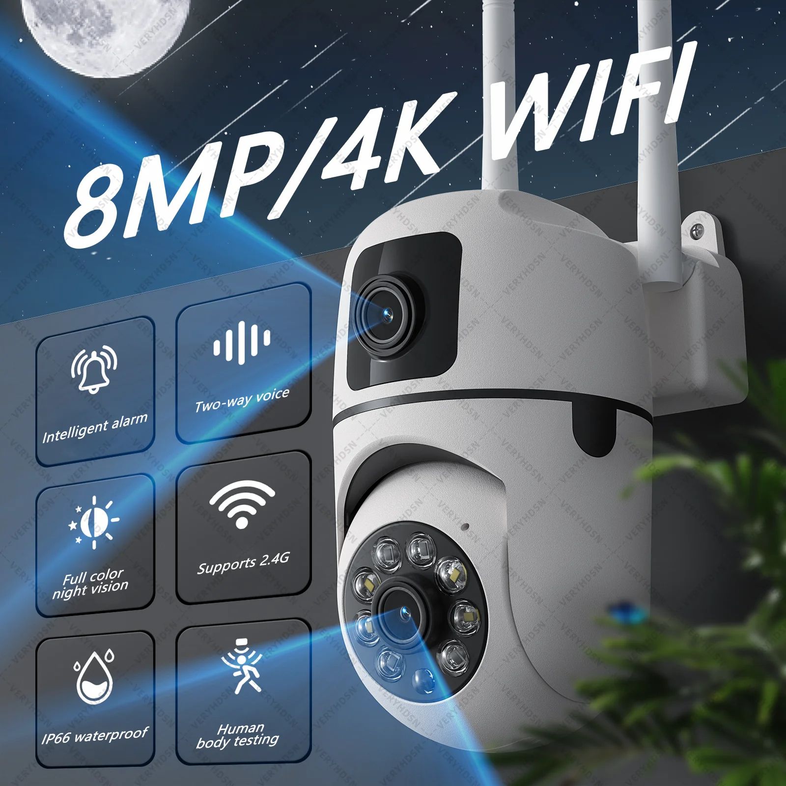 Dual Lens Outdoor WiFi Surveillance Camera, PTZ, Dual Screen, AI Auto Tracking, Waterproof Security IP Camera Dual Lens Outdoor WiFi Surveillance Camera, PTZ, Dual Screen, AI Auto Tracking, Waterproof Security IP Camera