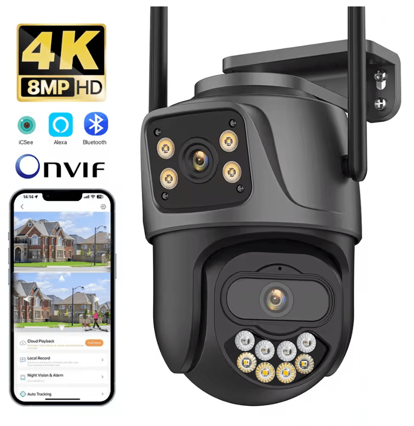 4K 8MP Dual Lens Outdoor WiFi PTZ Security Camera With Auto Tracking And Night Vision 4mp Add 64g