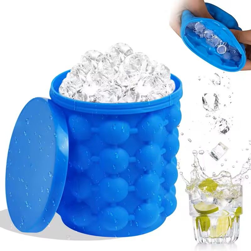 Premium Silicone Ice Cube Mold For Refrigerator, Round Ice Bucket Shape, DIY Summer Ice Maker For Home Use blue