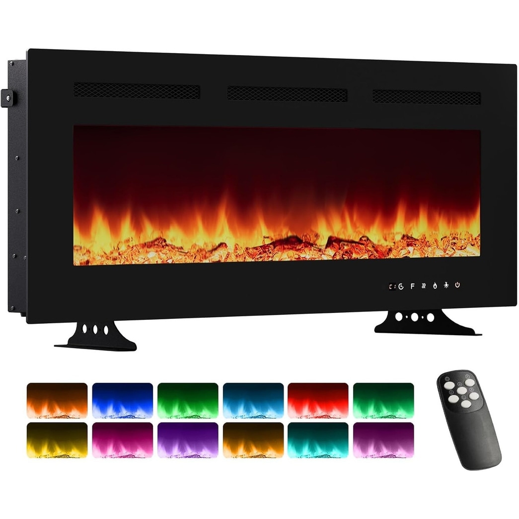 Bossin 30 to 72 inch Electric Fireplace Ultra-Thin and Silence Linear Recessed Wall Mounted Fireplace with Remote Control