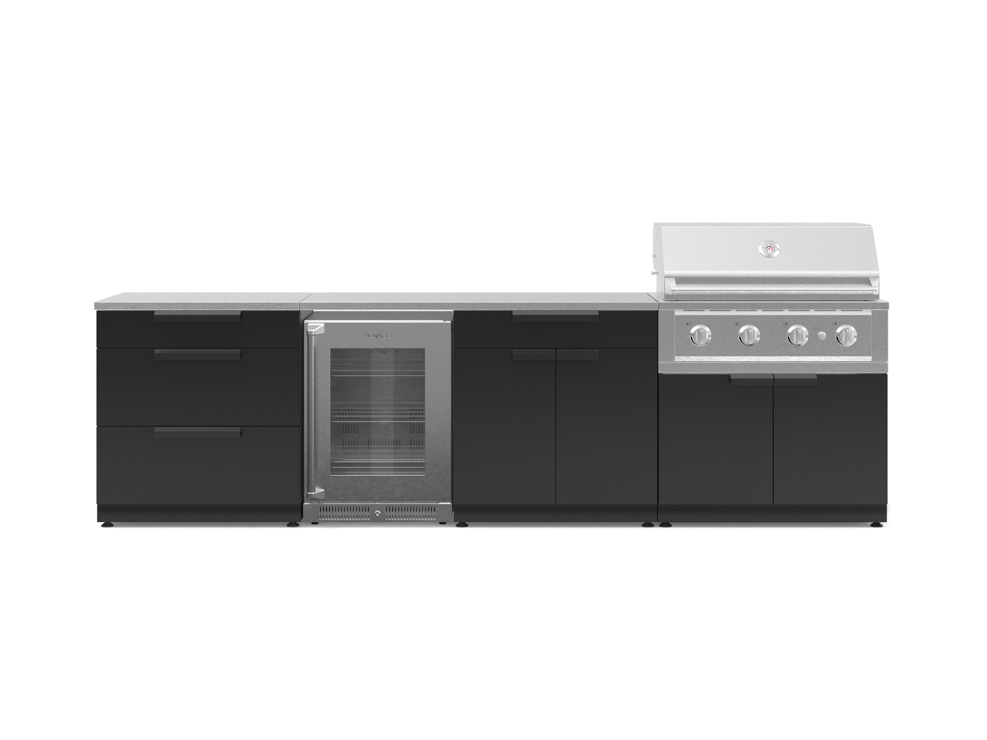 NewAge Outdoor Kitchens Stainless-Steel 4-Piece Cabinet Set with 3 Drawer, Grill Cabinet, Performance Grill, and Countertop