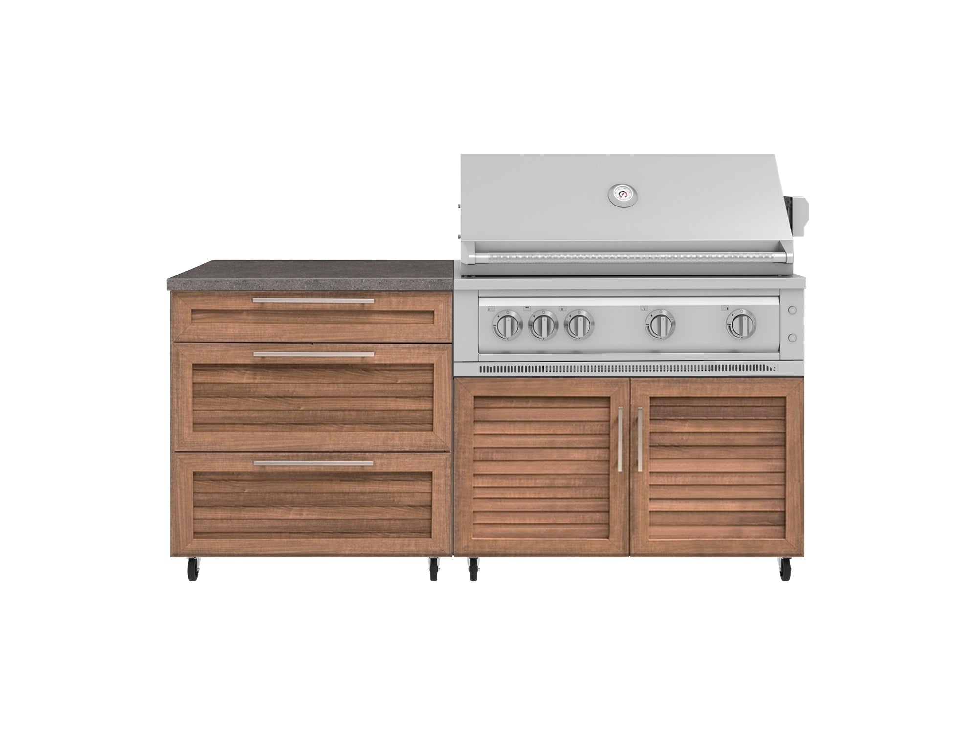 NewAge Outdoor Kitchens Stainless-Steel 5-Piece Cabinet Set with with 3-Drawer, Bar, Grill Cabinet, Platinum Grill and Countertop
