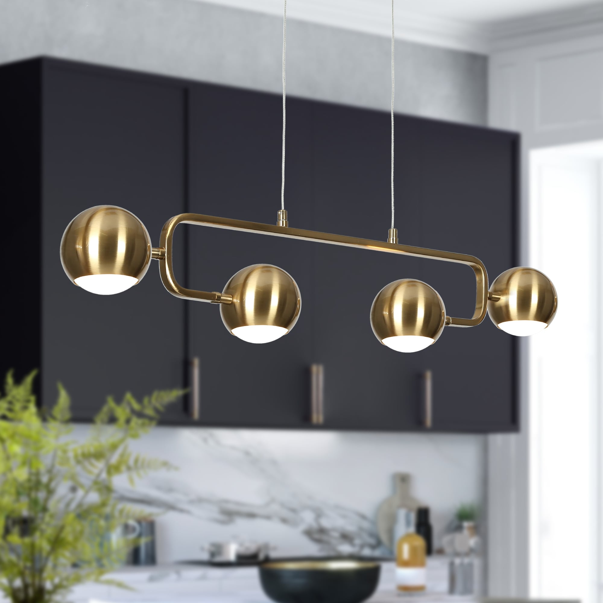 Modern 4-Light Gold Brass LED Chandelier Metal Linear Island Lights for Dining Room