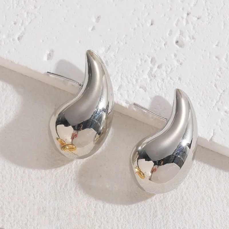 Gold Stainless Steel Necklace Set: Vintage Waterdrop Pendant & Earrings For Women Birthday Gift Metal Color: Earrings 2