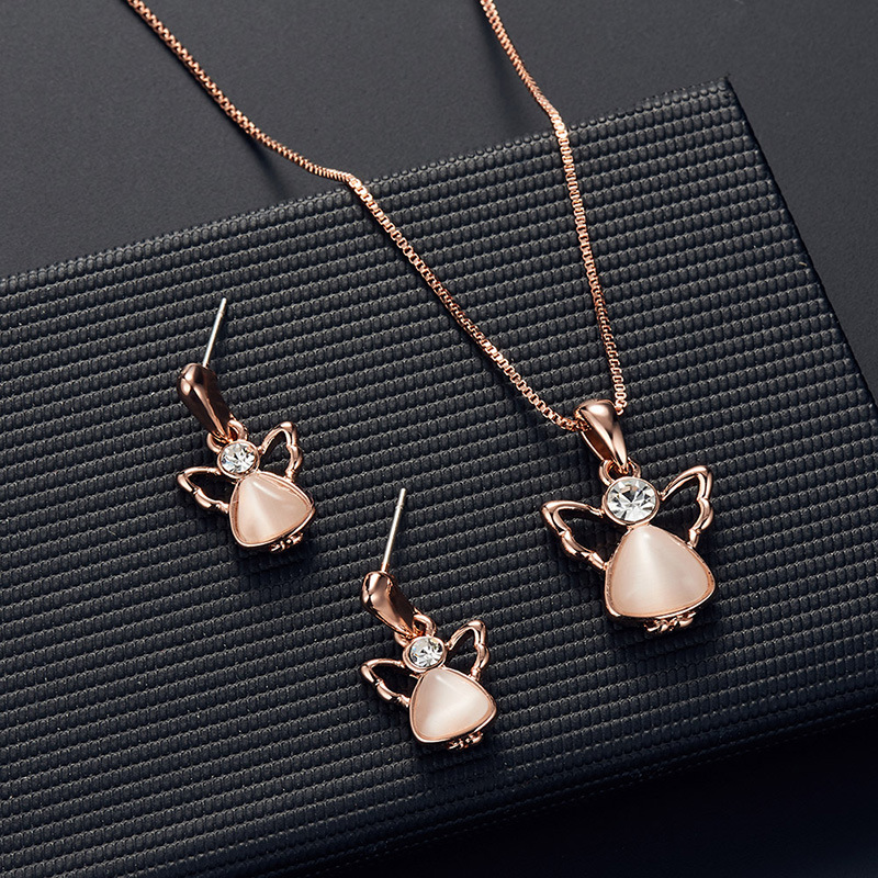 Anime Inspired Stainless Steel Jewelry Set: Cute Cartoon Bow Mouse Chain Necklace & Choker For Women Metal Color: Set gold 121