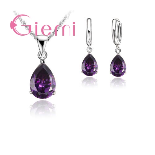 Sterling Silver Jewelry Set With Austrian Crystal For Women Elegant Engagement Necklace And Earrings Wholesale blue
