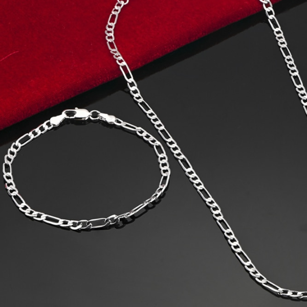 925 Sterling Silver 4MM Chain Jewelry Set: Noble Design For Men & Women, Perfect Christmas, Wedding Charms 40cm And 20cm