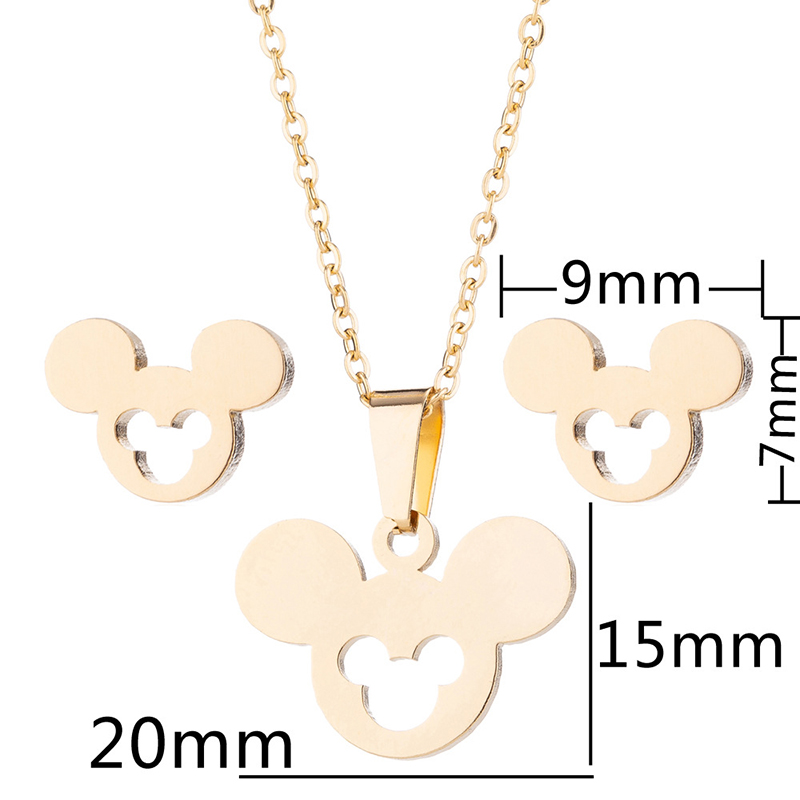 Minnie Mouse Stainless Steel Jewelry Set: Cute Mickey Head Stud Earrings & Necklace In Gold Silver For Women Girls Party 3