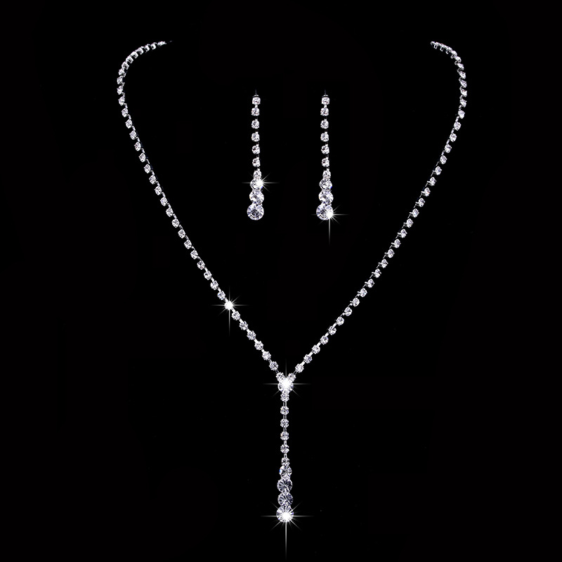 Handmade Crystal Necklace And Earrings Set Elegant Wedding Jewelry For Women And Girls single Dew Rain Neck