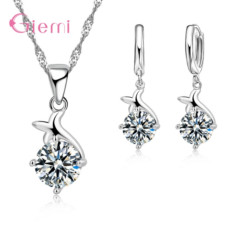 925 Sterling Silver Crystal Pendant Necklace & Earrings Set For Women | Trendy Anniversary Gift Fashion Jewelry 14