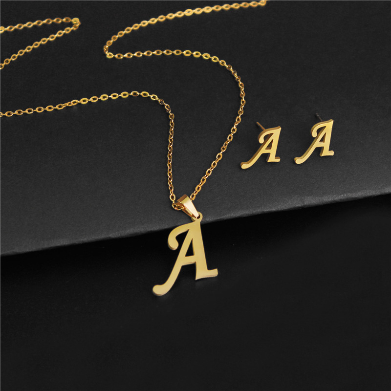 Alphabet Initial Necklace & Stud Earrings Set: A Z Charms For Mom Gifts With Drop Shipping Metal Color: TZ001 A